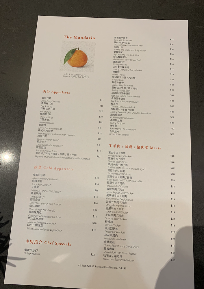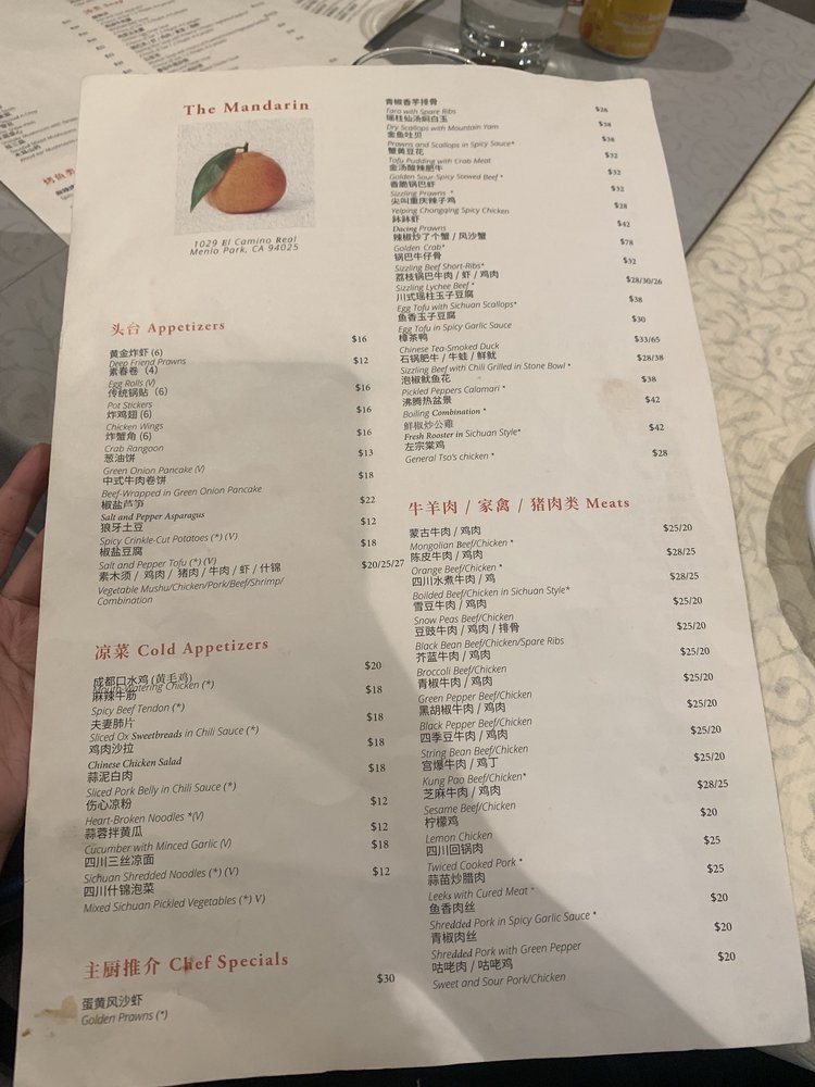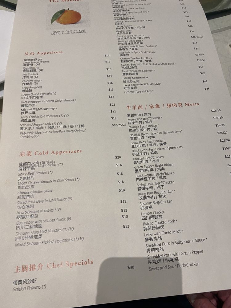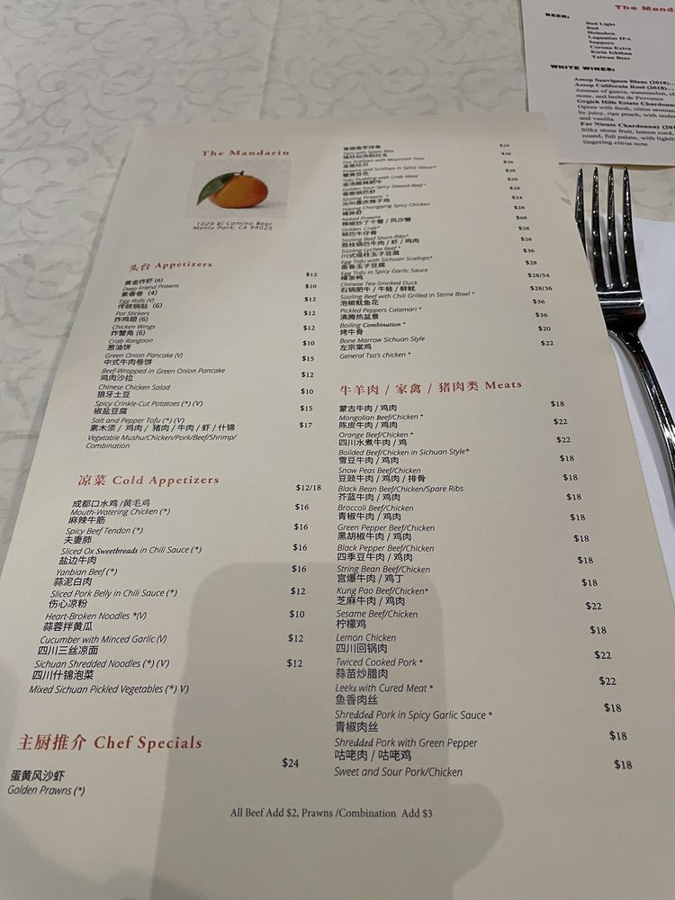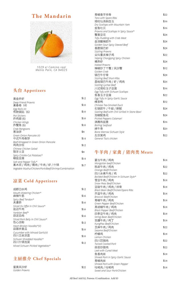 Introducing the menu at The Mandarin, a Chinese restaurant in Menlo Park, CA, where upscale dining meets authentic flavors. From Chef Specials like Boiling Combination and General Tso's Chicken to Cold Appetizers like Sichuan Shredded Noodles and MouthWatering Yellow Chicken, the menu offers a wide range of exquisite dishes. Customers rave about the beautifully presented and flavorful options, with Monica O. praising the Spicy Beef Tendon and Kung Pao Chicken. The elegant interior and attentive service enhance the dining experience, making it a top choice for family gatherings or special occasions. With a diverse selection of dishes and a focus on quality ingredients, The Mandarin is a must-visit for those seeking a taste of traditional Chinese cuisine in a refined setting.